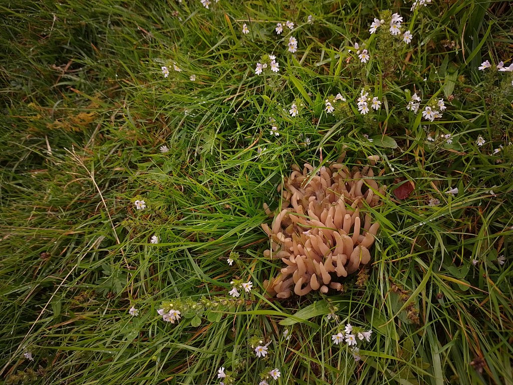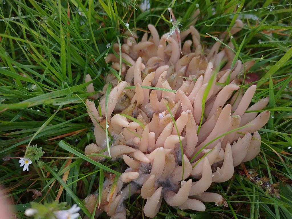 | Fruit body | 4-10cm, Pink-grey (turning red-brown when dried out), unbranched, club-shaped > spindle-shaped, finely pointed > blunted tip |