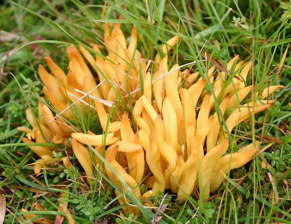 | Fruit body | 4-12cm, golden-yellow, unbranched, spindle-shaped, flattened, often grooved, wavy or twisted, tips usually pointed |