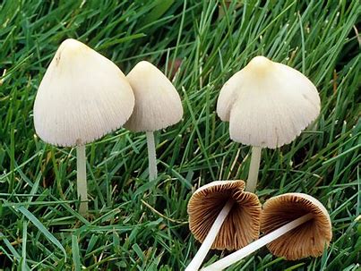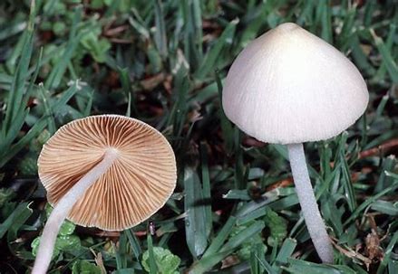 | Cap | 1-1.5cm, cream-white, conical, glistening when dry, no striations, |