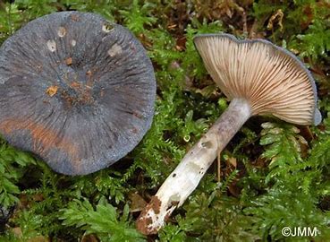 | Cap | 3-8cm, conical > bell-shaped > convex, broadly umbonate, steel blue > off-grey, smooth with radial fibrils |