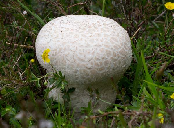| Peridium (exterior) | 6-15cm, pear-shaped, tapers sharply into grooved base, outer peridium white and granular > grey-brown and cracked, inner peridum smooth and grey |