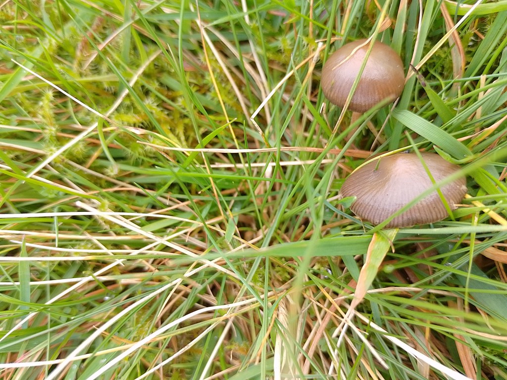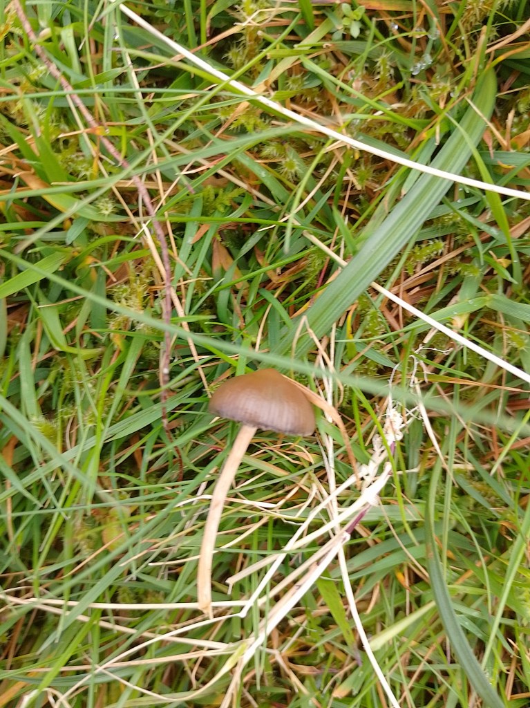 | Cap | 0.5-3cm, brown (striated) > olive/buff > cream-white > golden, tends to mantain a purple-black colour at cap margin, conical > bell shaped, obviously umbonate |